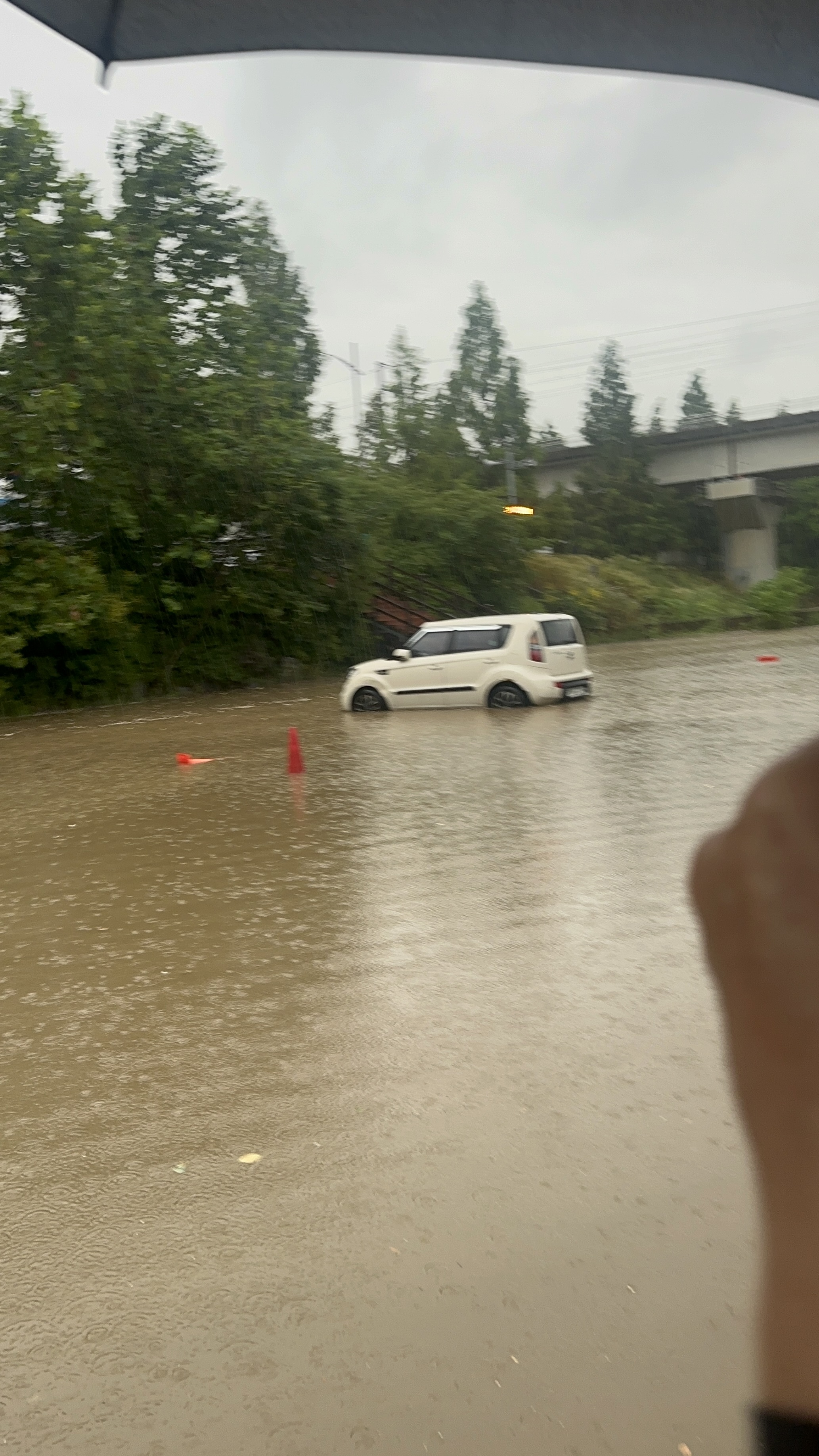 주차장에서 다들 빠져나갔는데 저는 집이 가까워서 차를 두고 갔더니 잠깐 사이에 우리 차도 수영을….