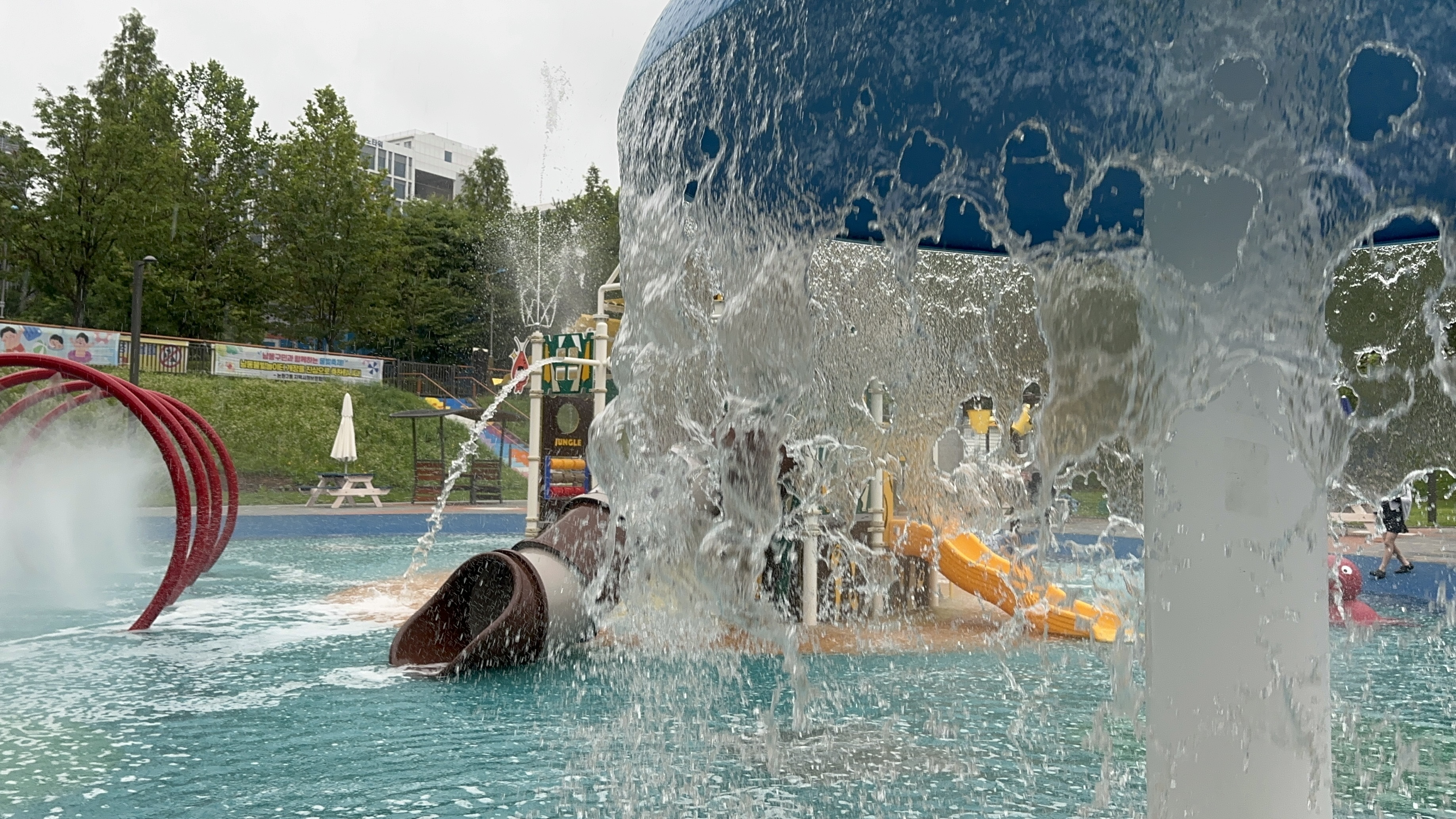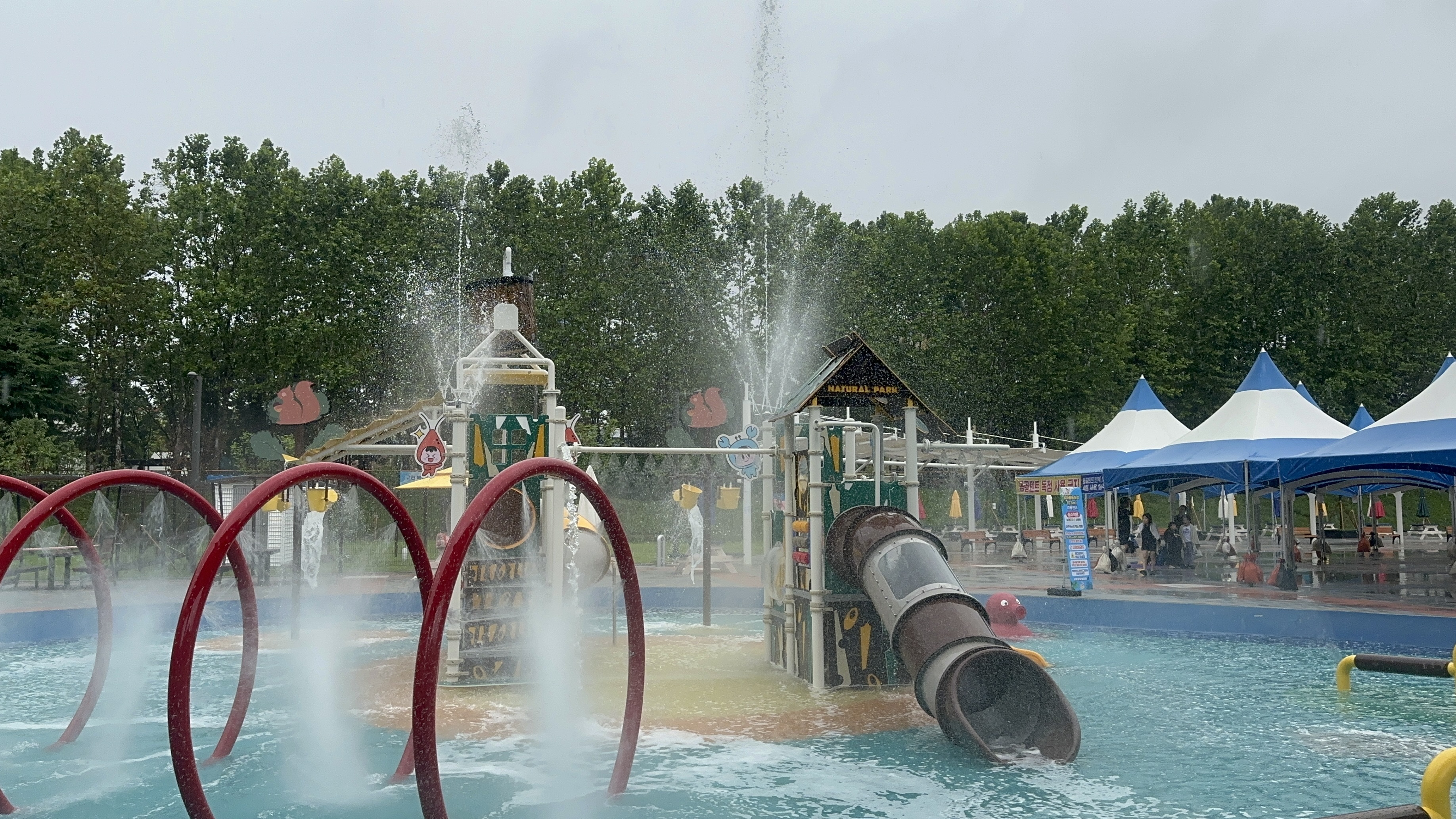 우리동네에 있는 동네 유수풀장에 비가 오니 사람도 없고 너무 좋네요