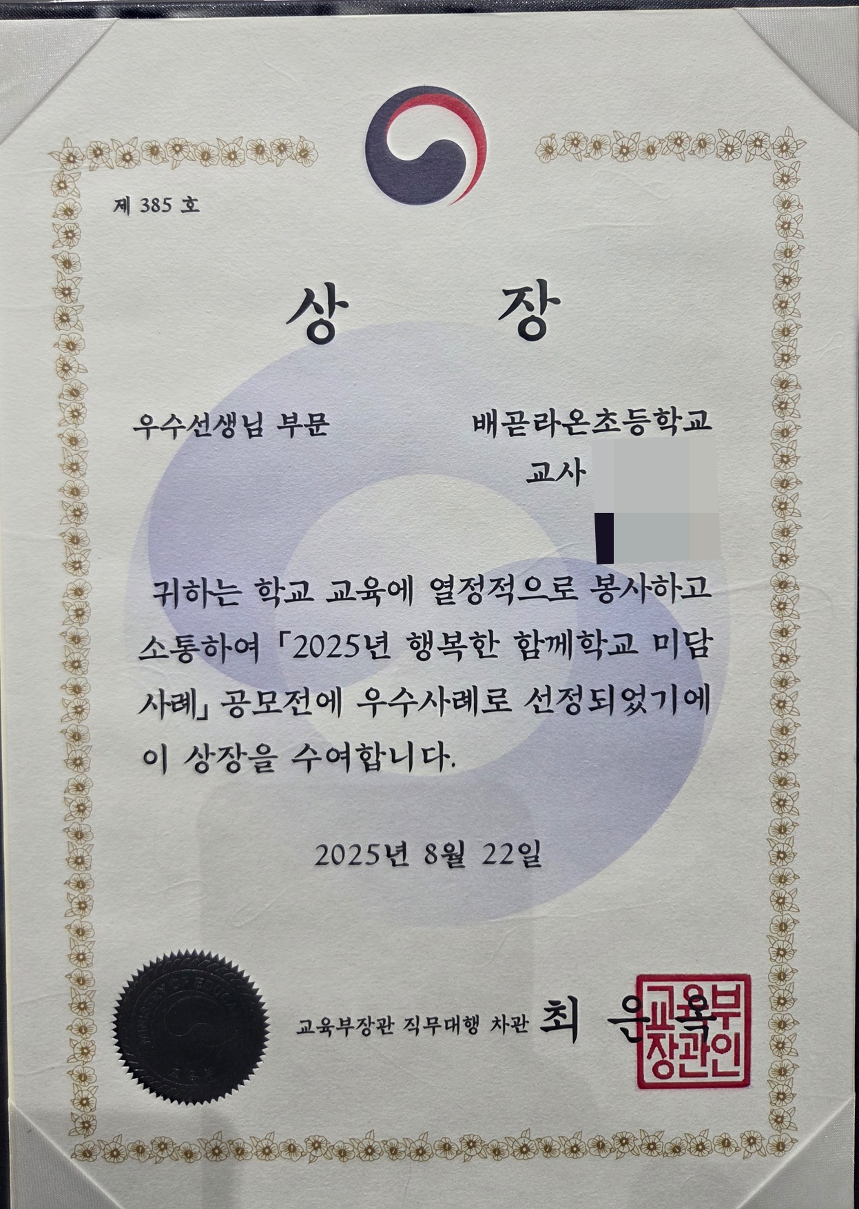 아차, 2024년에는 우리학교에도 장관상을 선물해서