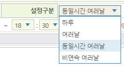 수업이 반복되는 경우 반복되는 시간을 날짜 상황에 따라서 동일시간 여러 날, 또는 비연속 여러날