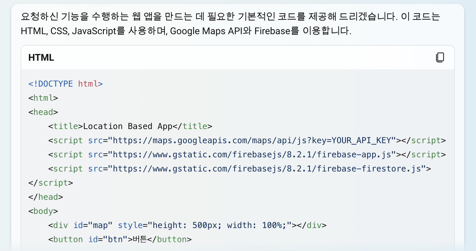 - Firebase SDK 추가: 앱이 등록되면, Firebase SDK를 웹 앱에 추가하는 방법이 표시됩니다. 이 설정 정보를 복사하여 웹 앱의 HTML 코드에 붙여넣습니다.
